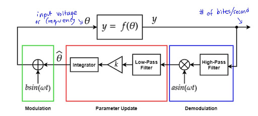 - Step Size: The demodulater and integrator allow for the step size of this search method to automatically adjust and become more precise as the maximum value is approached.