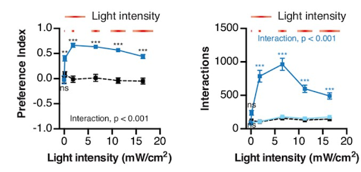 Given past research that has been done by Gordon Lab, we can see that the relationship between input power and the cumulative bites taken by the flies in response to the optogenetic manipulation is not linear: